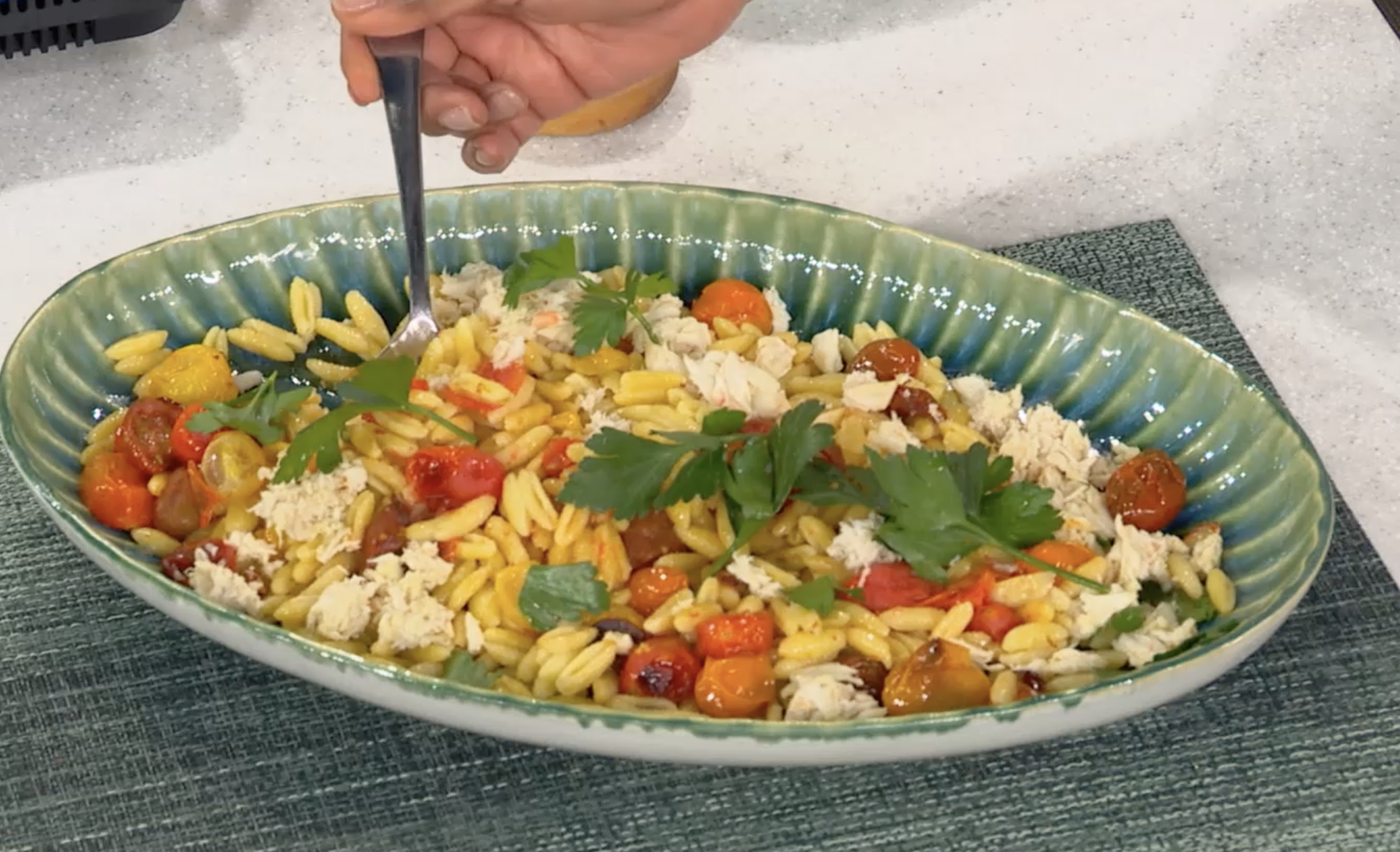 - Add the parsley, another splash of the reserved hot water, and gently toss to combine. Return the pan to medium-high heat and continue conking just until the sauce reduces slightly but still allows the cavatelli to “swim” in the pan, about 1 minute.